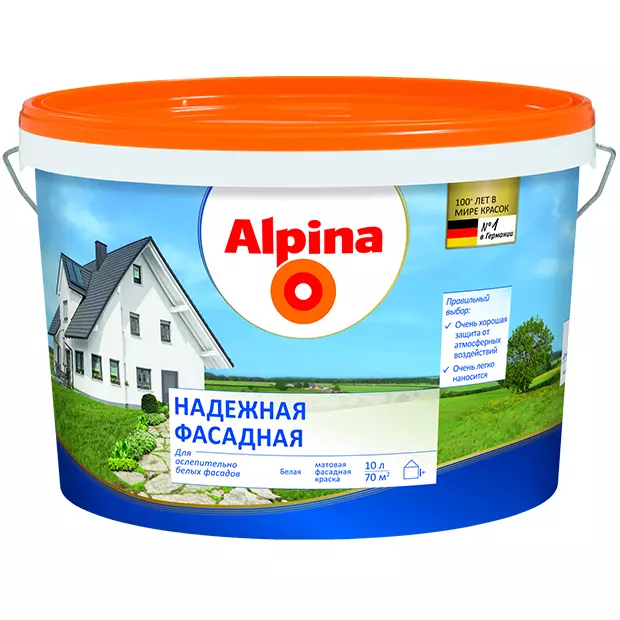 Краска водно-дисперсионная для наружных работ Alpina "Надежная фасадная" белая, 10 л