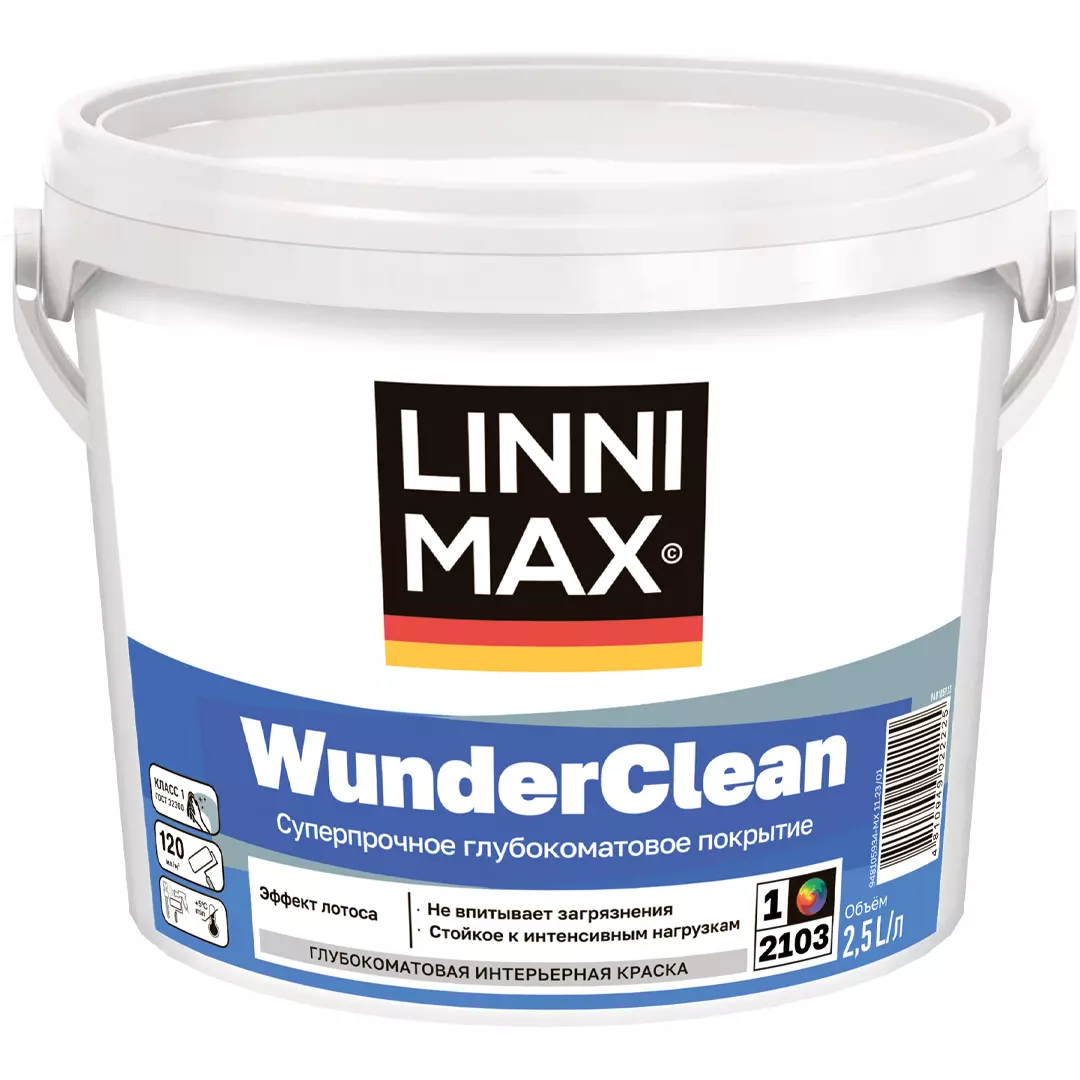 LINNIMAX WunderClean отличается повышенной износостойкостью и устойчивостью к влажной уборке, что особенно важно для помещений с высокими эксплуатационными нагрузками. Краска легко наносится, быстро сохнет и не имеет резкого запаха, обеспечивая комфорт во время работы. Благодаря акриловой основе она образует прочное, дышащее покрытие, устойчивое к истиранию и выцветанию. Бренд Linnimax гарантирует высокое качество продукции, делая эту краску отличным выбором для ремонта в квартирах, офисах и других интерьерных пространствах.