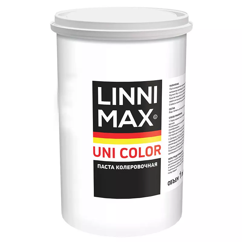 Продукт от бренда **Linnimax** отличается высокой пигментной насыщенностью, что обеспечивает экономичный расход и стабильный результат колеровки. Паста **Neutralgruen** (76) дает красивый нейтрально-зеленый оттенок, который легко адаптируется под индивидуальные предпочтения. Формула на водно-дисперсионной основе безопасна в использовании, не содержит вредных примесей и быстро смешивается с основным материалом. Удобная фасовка в литровую тару делает продукт практичным как для профессионального, так и для домашнего применения.